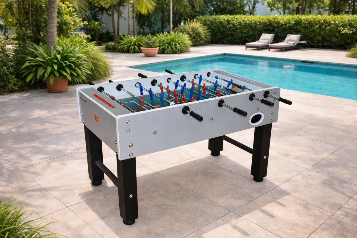 Apportez une ambiance conviviale à votre espace avec ce baby-foot professionnel de 150 cm, conçu pour une utilisation en extérieur ou en intérieur. Son design élégant gris et noir, allié à une construction robuste en bois de peuplier de 30 mm d'épaisseur avec traitement extérieur, garantit durabilité et résistance face aux intempéries.