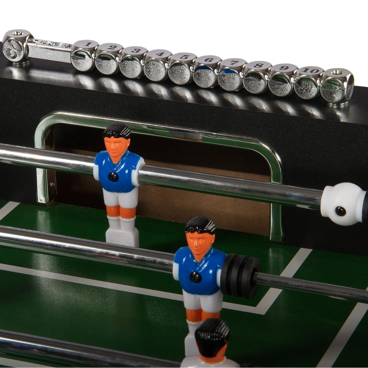 Très pratique avec son système de pieds, cette table de baby-foot se range à l'horizontal simplement.