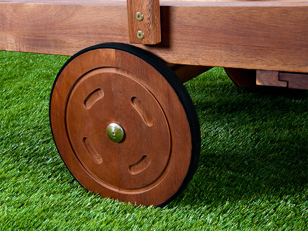 Le bain de soleil est équipé de deux roues solides, ce qui permet de le déplacer facilement selon l’orientation du soleil ou vos envies.