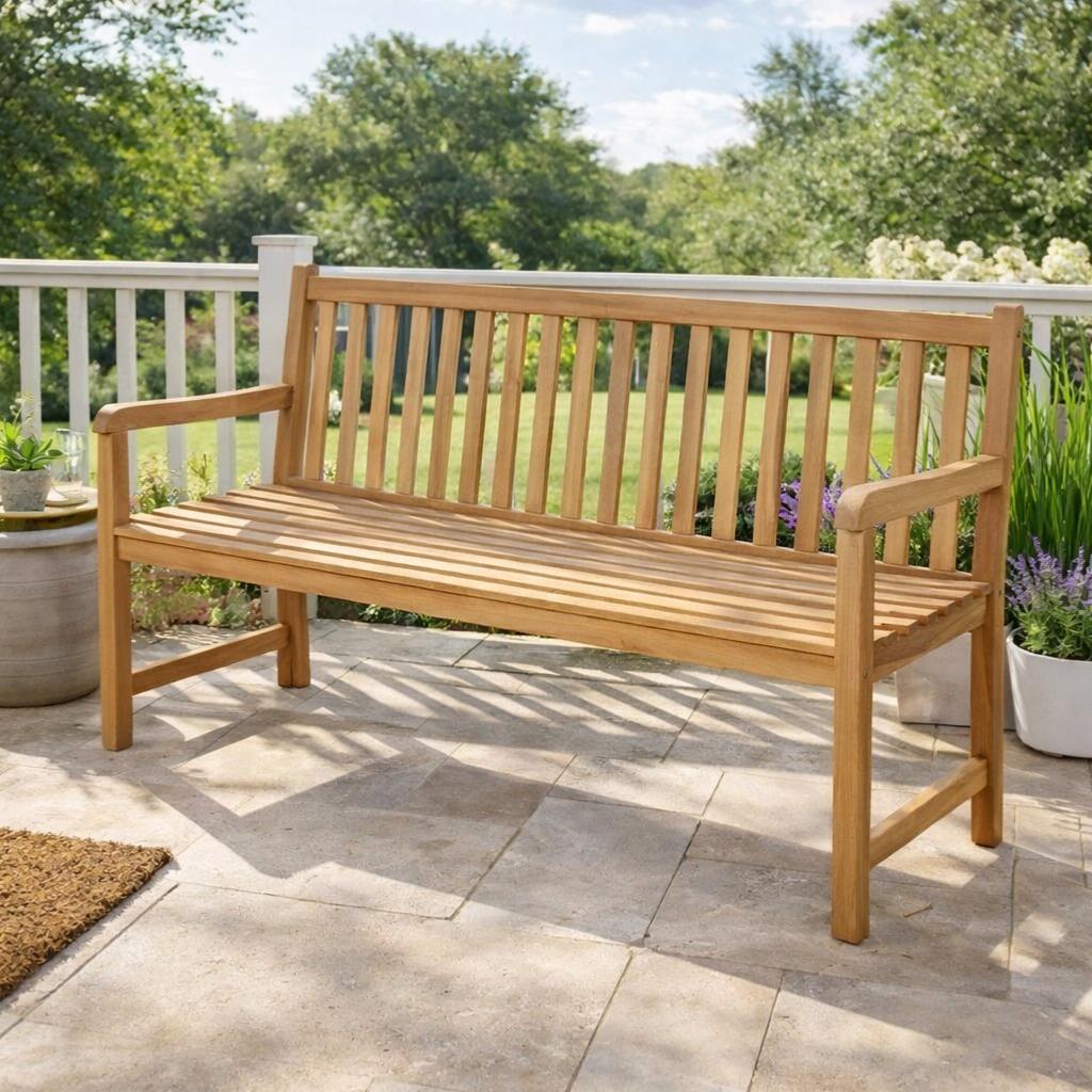 Fabriqué en bois exotique de teck, reconnu pour sa résistance naturelle aux intempéries, ce banc est conçu pour un usage extérieur durable. Sa finition soignée met en valeur la teinte chaude du bois et lui confère un style raffiné qui s’intègre facilement à tous les environnements.