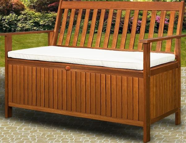 BANC de jardin bois exotique, 120 cm avec coffre de rangement
