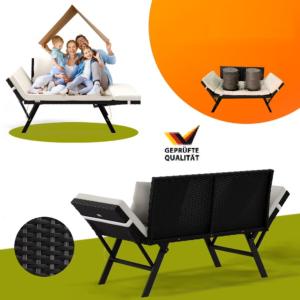 Ajoutez une touche de sophistication à votre espace avec ce banc 4 en 1 en résine tressée noire, aux lignes épurées et au design contemporain. Polyvalent, il se transforme facilement en chaise longue, banquette ou banquette-lit, grâce à ses accoudoirs rabattables qui s’ajustent en quelques secondes.
