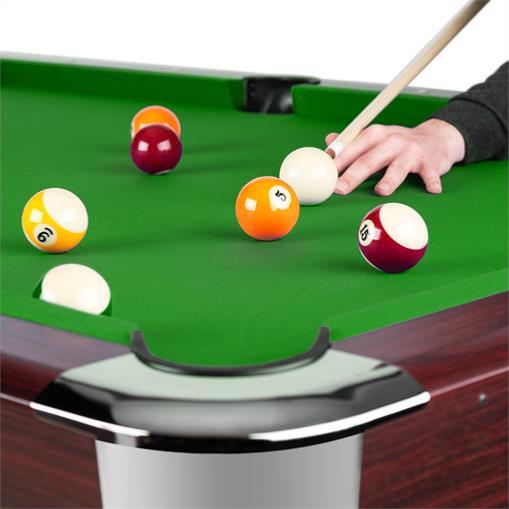 La surface de décoration est résistante aux égratignures, à la lumière et est facile à l'entretien. Le design de la table est sobre et élégant. Les bandes de renvoi et les coins sont en acier inoxydable chromé, arrondis et assurent ainsi un jeu en toute sécurité, y compris pour les enfants.