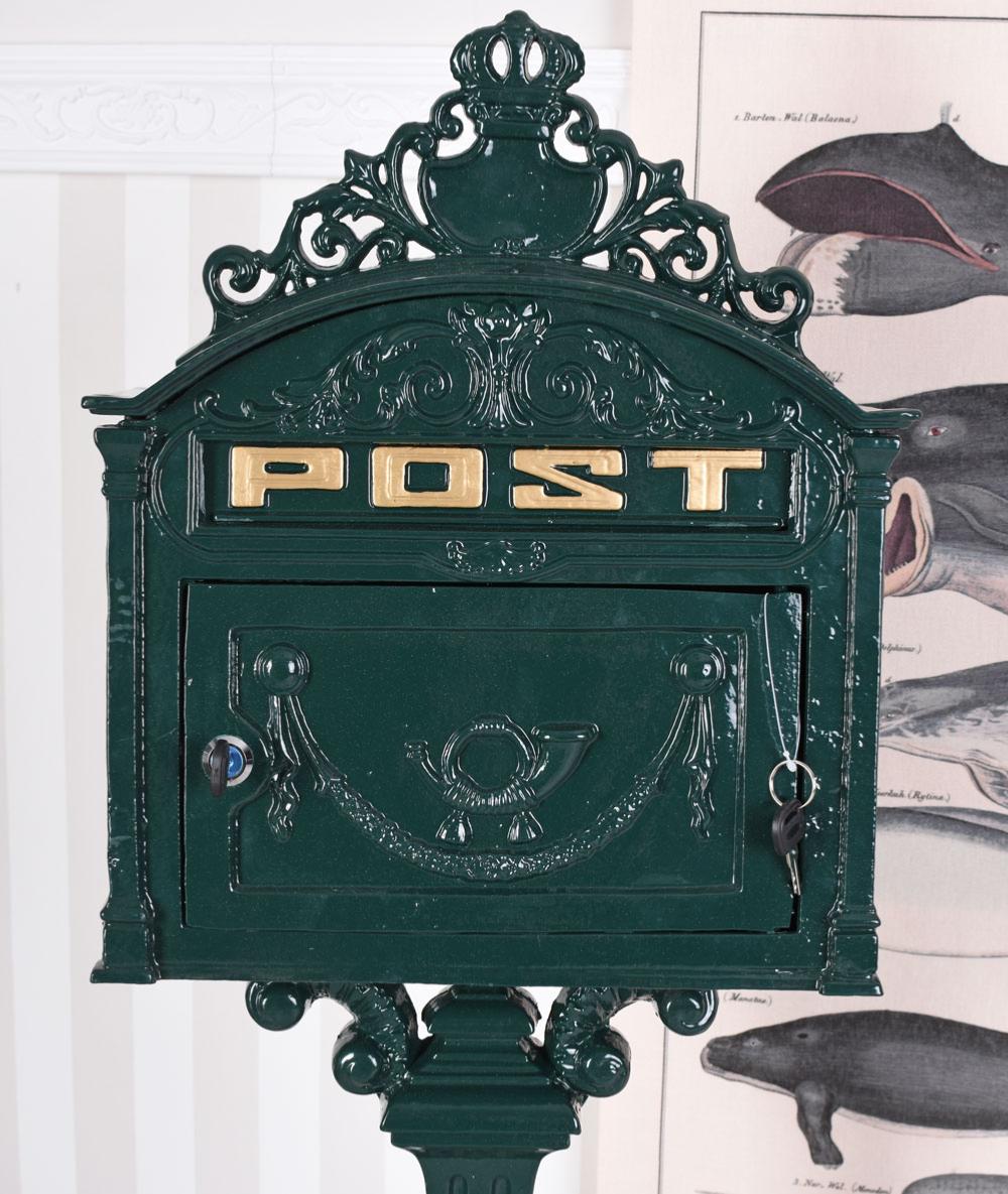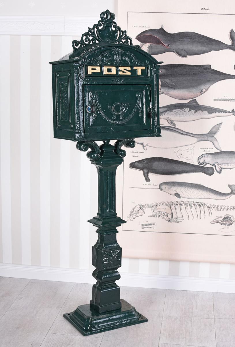Cette boîte aux lettres sur pieds est fabriqué fonte, revêtu d'une peinture poudrée verte. Une haute qualité de fabrication Allemande.