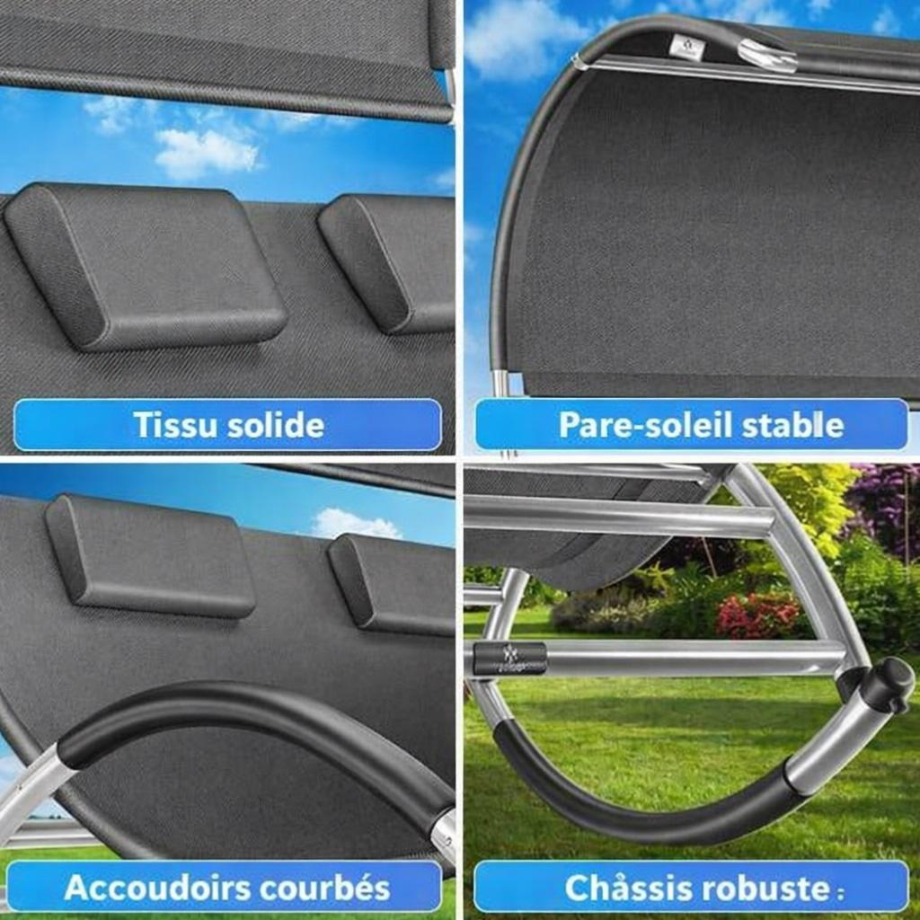 ✔ Chaise longue double à bascule pour 2 personnes