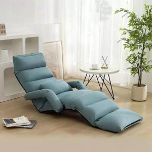 CHAISE LONGUE d'intérieur multi positions, design, pliable, rembourrage grand confort avec habillage en lin bleu.