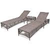 Lot de 2 transats en résine tressée grise et table d'appoint