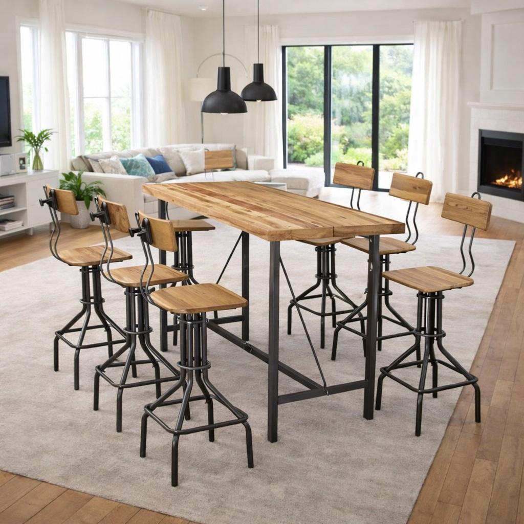 Apportez une touche industrielle chaleureuse à votre intérieur avec cet ensemble table bar en teck massif et métal. Idéal pour une cuisine ouverte, une salle à manger moderne ou un espace repas type loft.