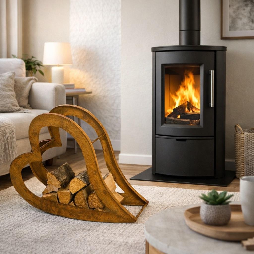 Cette étagère à bois de chauffage en forme de cœur couché est bien plus qu’un simple rangement : c’est un véritable objet décoratif. Avec sa finition rouille et son design original, elle attire immédiatement le regard, qu’elle soit remplie de bûches ou laissée vide.