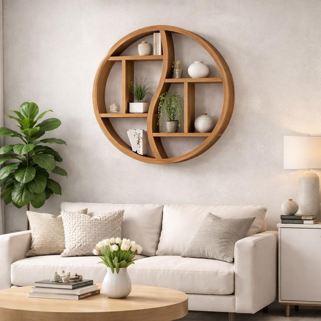 Avec sa forme circulaire et ses compartiments intégrés, cette étagère devient un véritable élément décoratif mural, parfait pour habiller un mur tout en offrant des espaces de rangement pratiques.