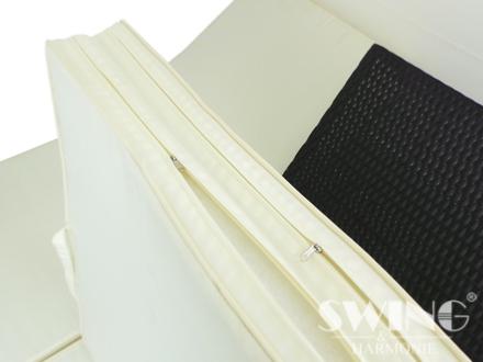 Ce transat / lit  pour deux personnes en résine tressée possède un matelas amovible à 6 différents niveaux et équipé d'un toit amovible.