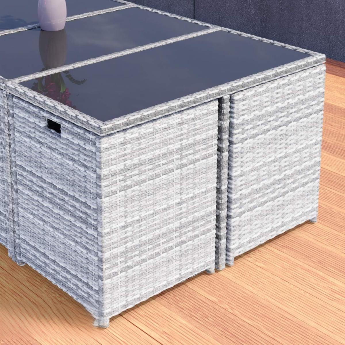 Salon de jardin résine tressée gris, encastrable, de 4 à 16 places