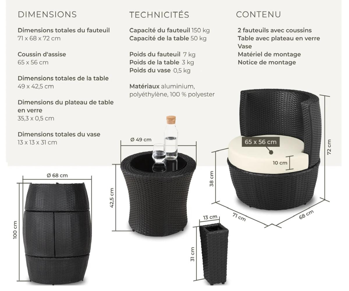 Ce set de deux fauteuils de jardin , entièrement encastrable, avec sa table basse très moderne et original, accompagné de son vase, est pour vous !