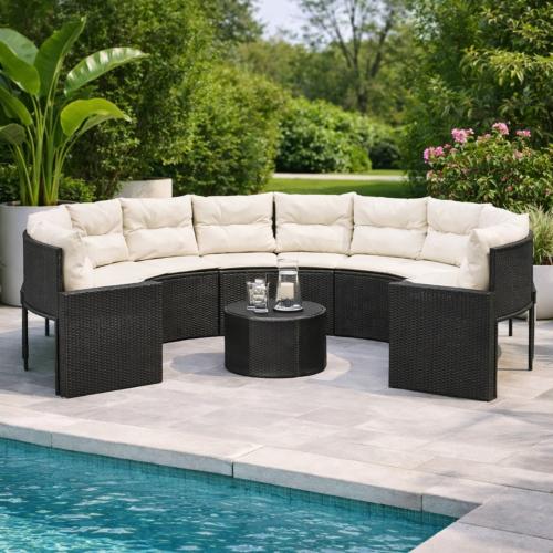 SALON de jardin rond 280 cm, en résine tressée noir, table basse