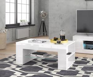 Table basse moderne, coloris blanc laqué, de 100 x 60 cm, modèle LIVIO de grande robustesse