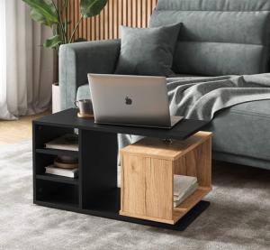 TABLE basse 90 cm, étagère pivotante, anthracite/chêne