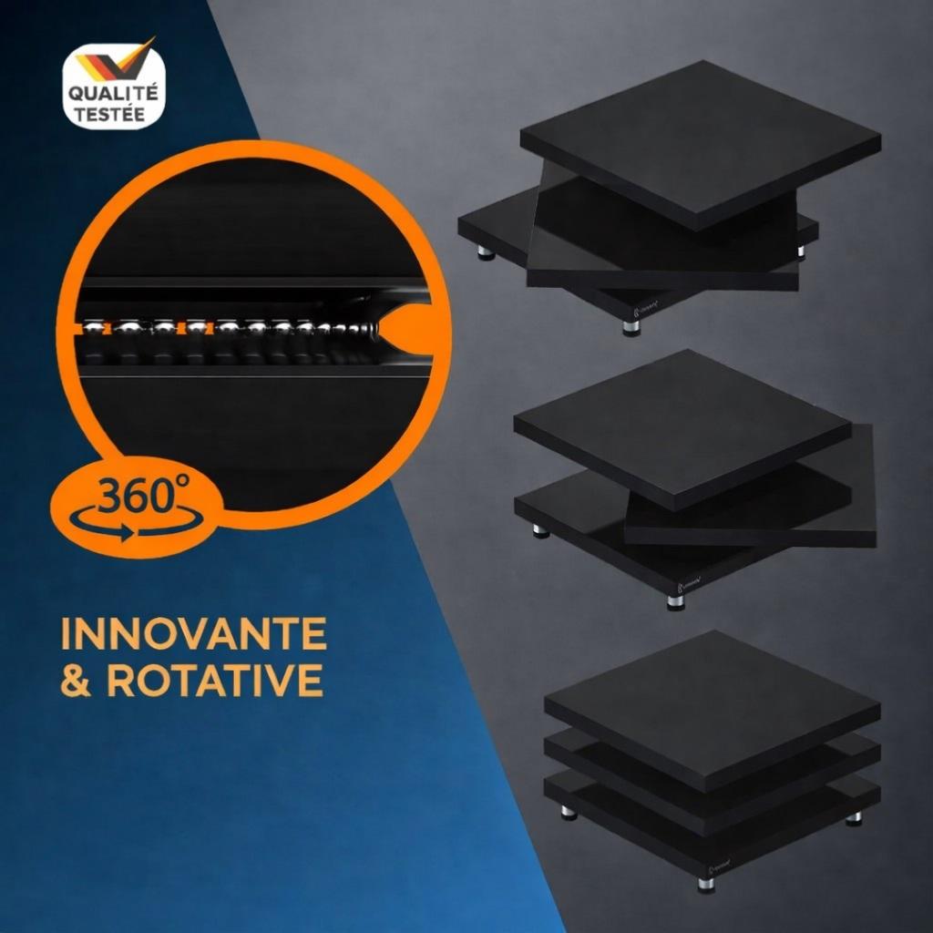 - Les deux niveaux supérieurs sont rotatifs à 360°