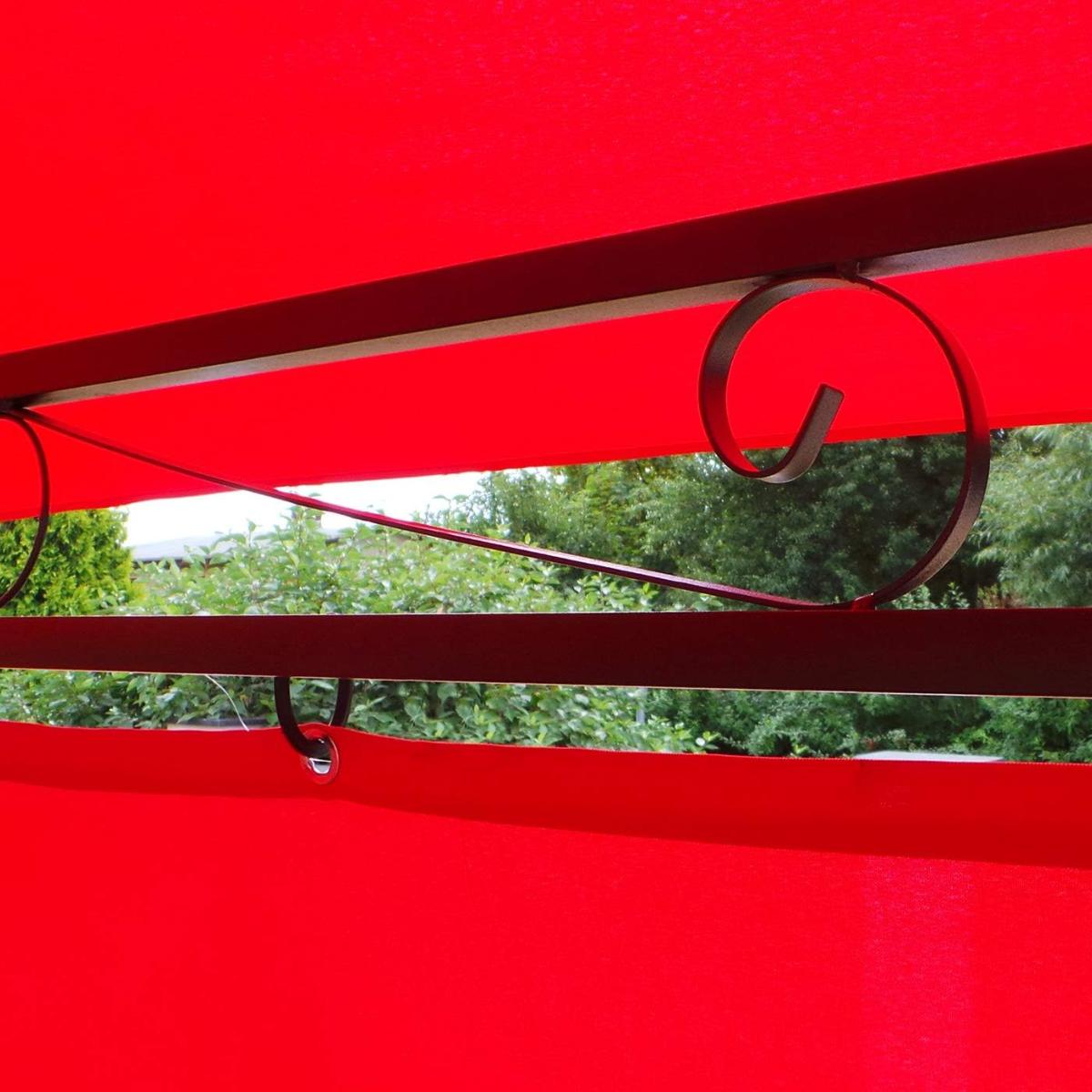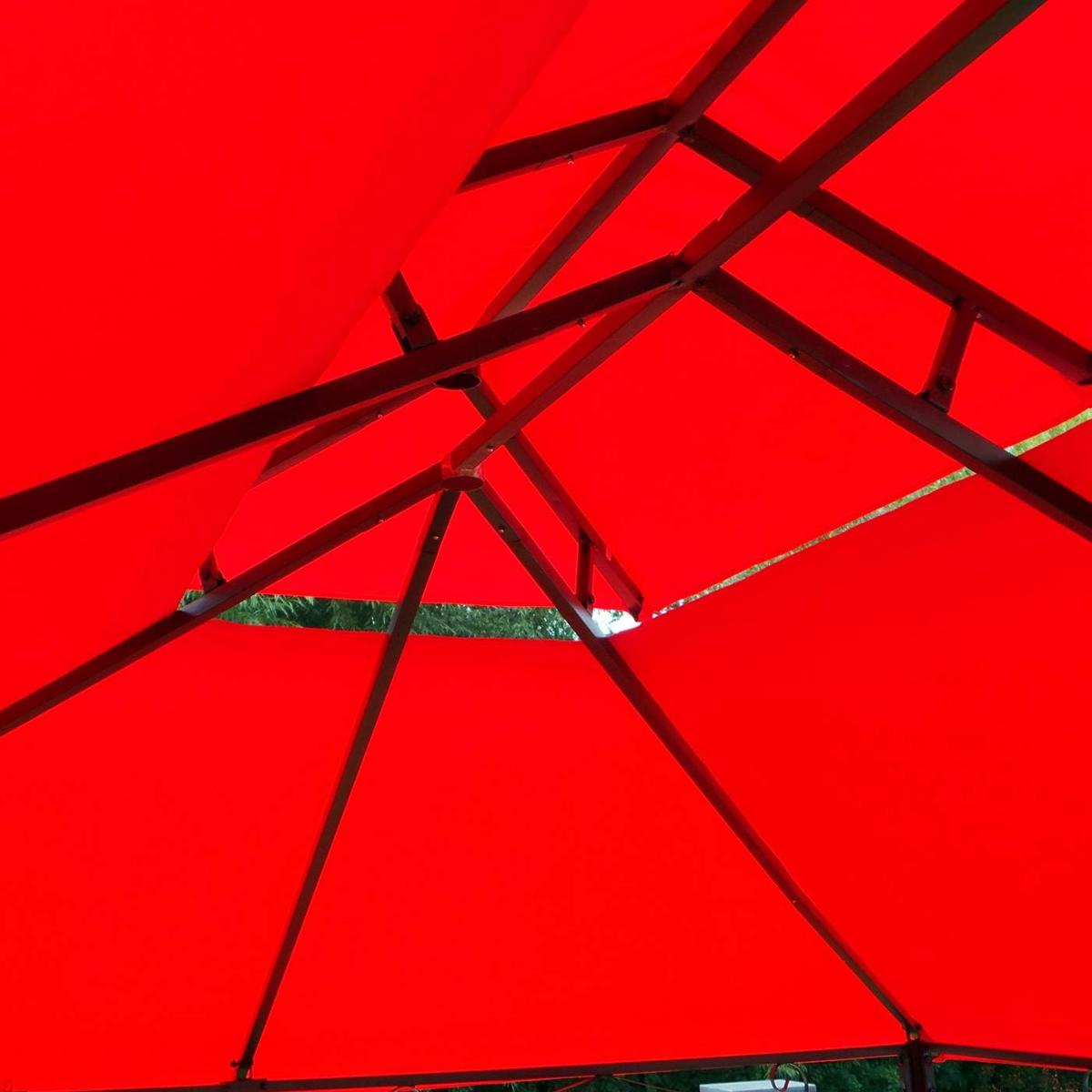 Grâce à sa grande surface de 12 m², cette tonnelle accueille aisément salon de jardin ou table repas.