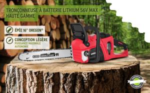 Tronçonneuse à batterie au lithium 56V, légère, maniable, haut de gamme, avec un excellent rapport puissance/poids, conçue pour ceux qui veulent une utilisation aisée et des résultats de coupe professionnels